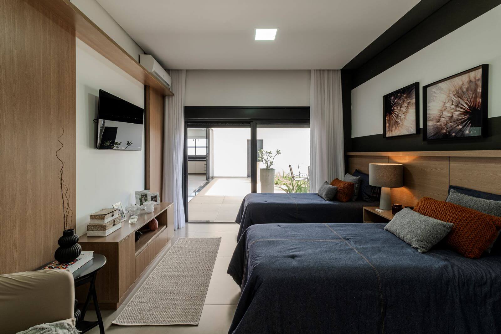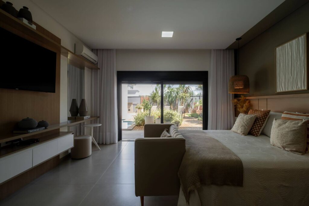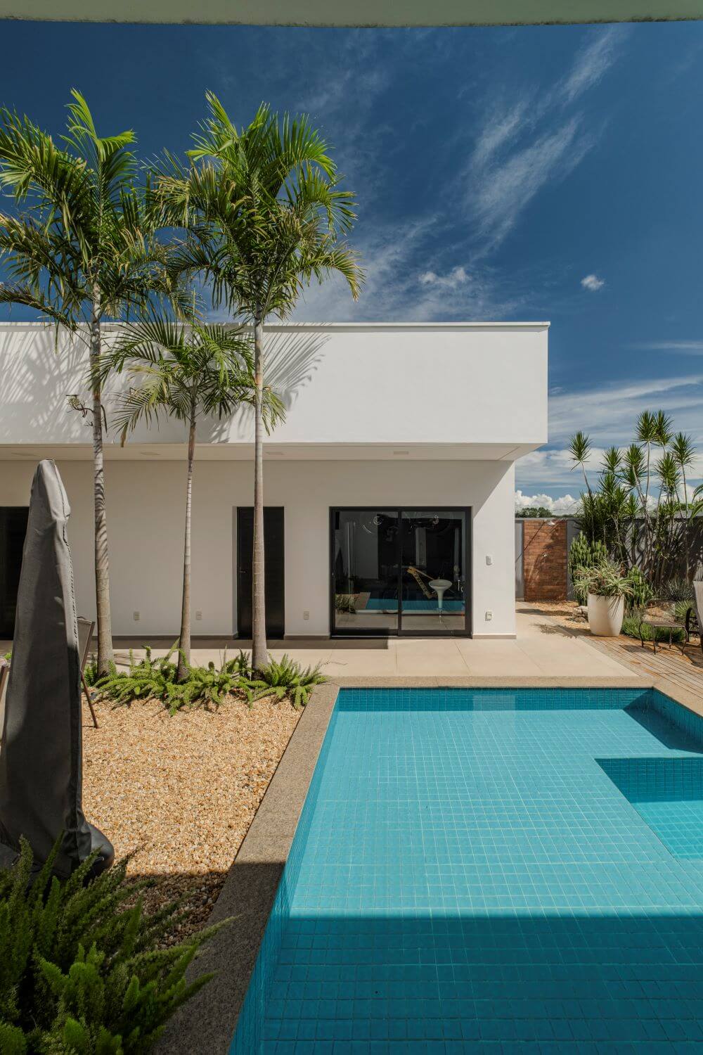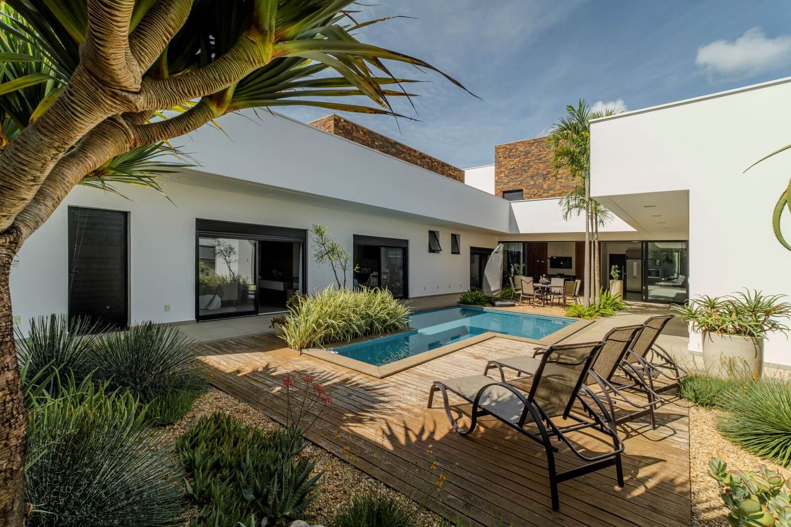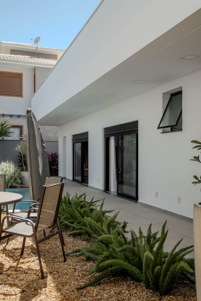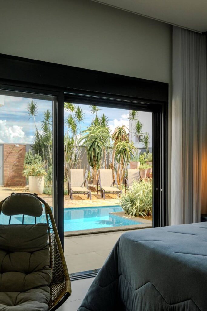 A piscina, rodeada por paisagismo exuberante, é o epicentro de serenidade. Este vídeo convida você a testemunhar a fusão perfeita entre design arquitetônico arrojado e natureza, onde as portas e janelas de alumínio na cor preta protagonizam uma experiência visual extraordinária.